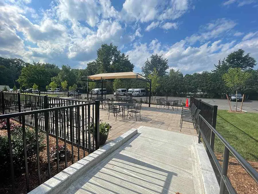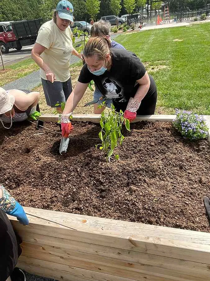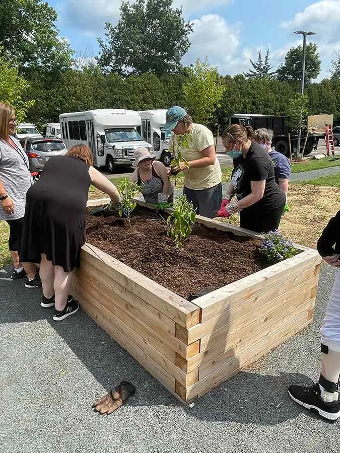 Just a little over a year ago, we settled into our new home at 25 Industrial Park Road. While we witnessed continuous improvements that enhanced the overall quality inside our building, it wasn’t until this spring we started to see some exciting new features happening outside. Now, as the height of summer approaches, we’re ready to enjoy an array of new opportunities, including a picnic patio, recreational field space and walking path, a basketball/pickleball court, raised garden beds, and a community memorial called the Remembrance Terrace. Although our primary focus is to resume and maintain community-based activities, COVID-19 has shown us the importance of having onsite resources and quality activities.