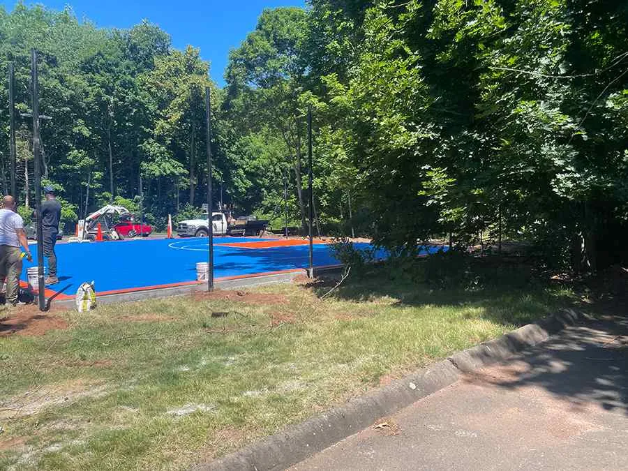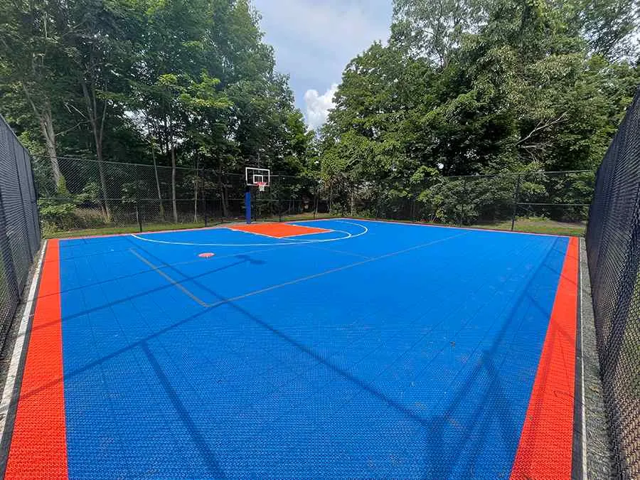 We are thrilled to offer an activity that is a favorite amongst so many here at MARC: basketball! Our old basketball hoop has followed us from our old building in Cromwell to here at 25 Industrial Park Road, but never before have we had our very own half-court! The surface is made with a soft-texture game tile, otherwise known as VersaCourt, which we especially like due to its comforting support to everyone’s joints during play. Another plus is that it holds up to rain without any puddling! Yet, the half-court doesn’t just accommodate basketball. It is outfitted with lines for Pickleball as well, making it a dual sport court. To prevent having to chase the ball into the woods, a common frustration, we decided to have a fence installed around the entire perimeter. As of now, the court is complete and welcoming players. We are so thankful for the quality and timely installation provided by Creative Landscape Design. Here’s to a future of many free throws, 3-pointers, and pickleball paddling!